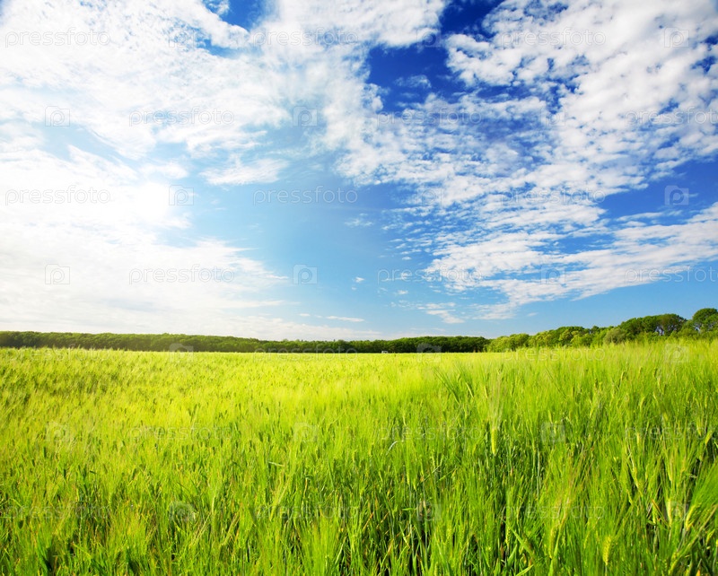 Поле зеленой ржи и голубое небо