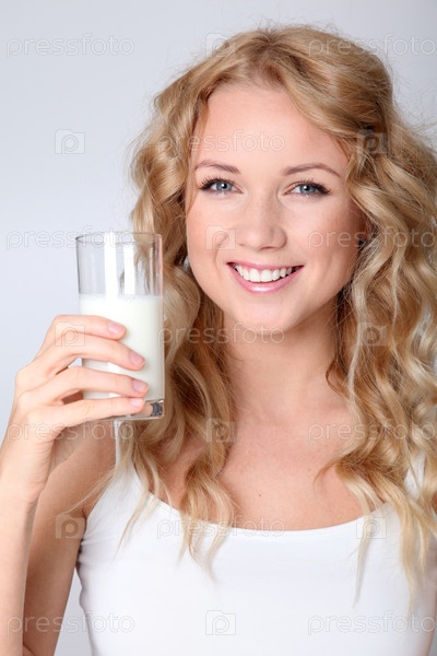 Блондинка пьет свежее молоко