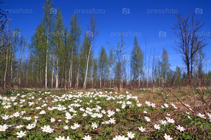Белые подснежники в лесу
