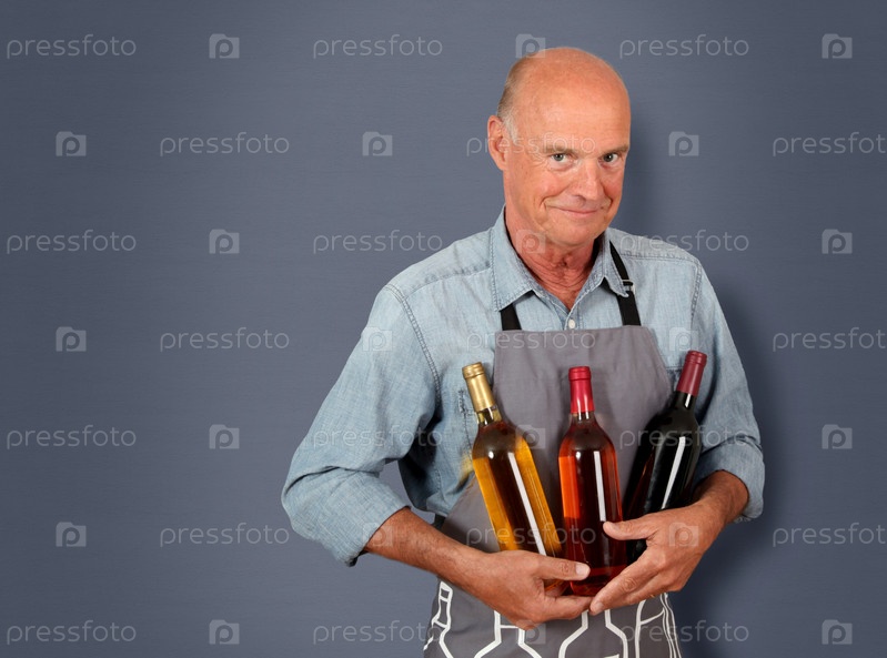 Винодел держа бутылки вина