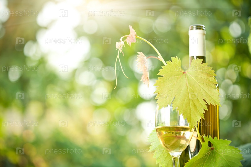 Бутылка белого вина, виноград