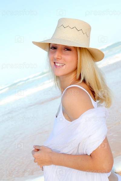 Красивая блондинка на пляже