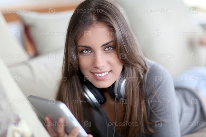 Красивая женщина лежа на диване