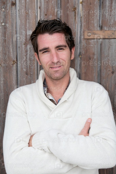 Красавец, стоя на деревянные двери