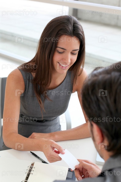 Деловые люди, обмен визитную карточку