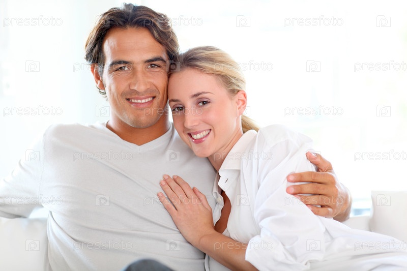 Портрет молодой пары дома
