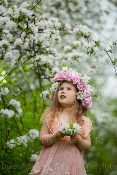 Маленькая девочка в цветущий сад