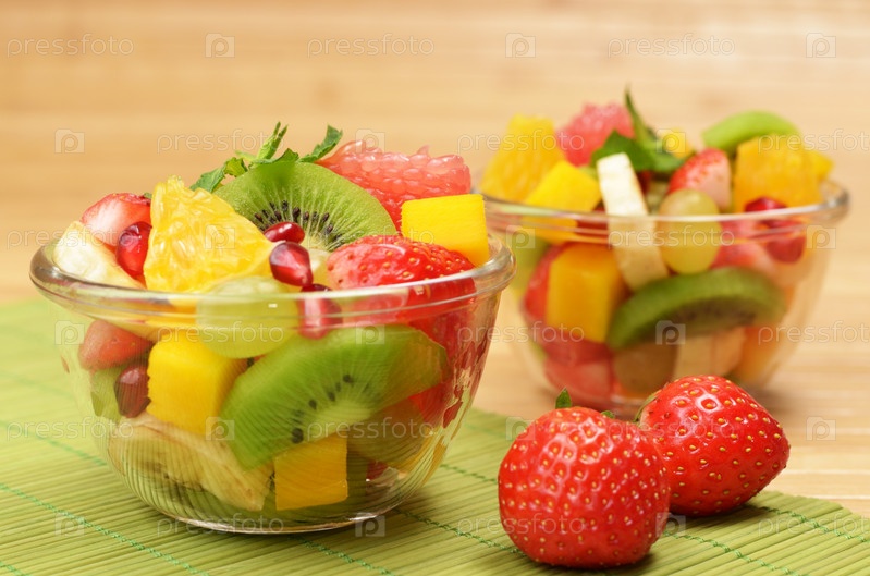 Фруктовый салат в стеклянной кастрюли