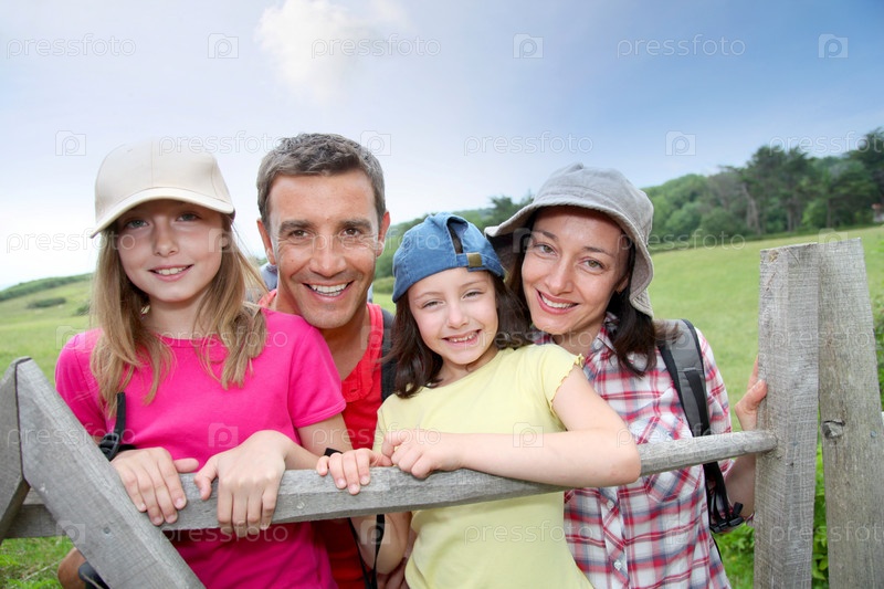 Семейный портрет стоя на забор