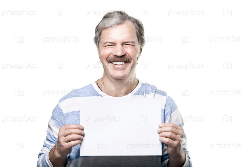 Зрелый человек, держащий пустой доске