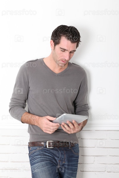 Человек, опираясь на стену
