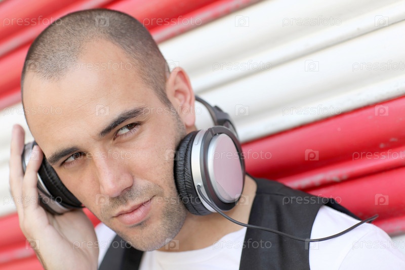 Молодой человек с Наушники Музыка