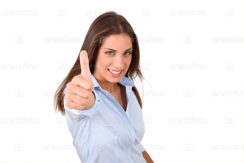 Красивая женщина показывает палец вверх