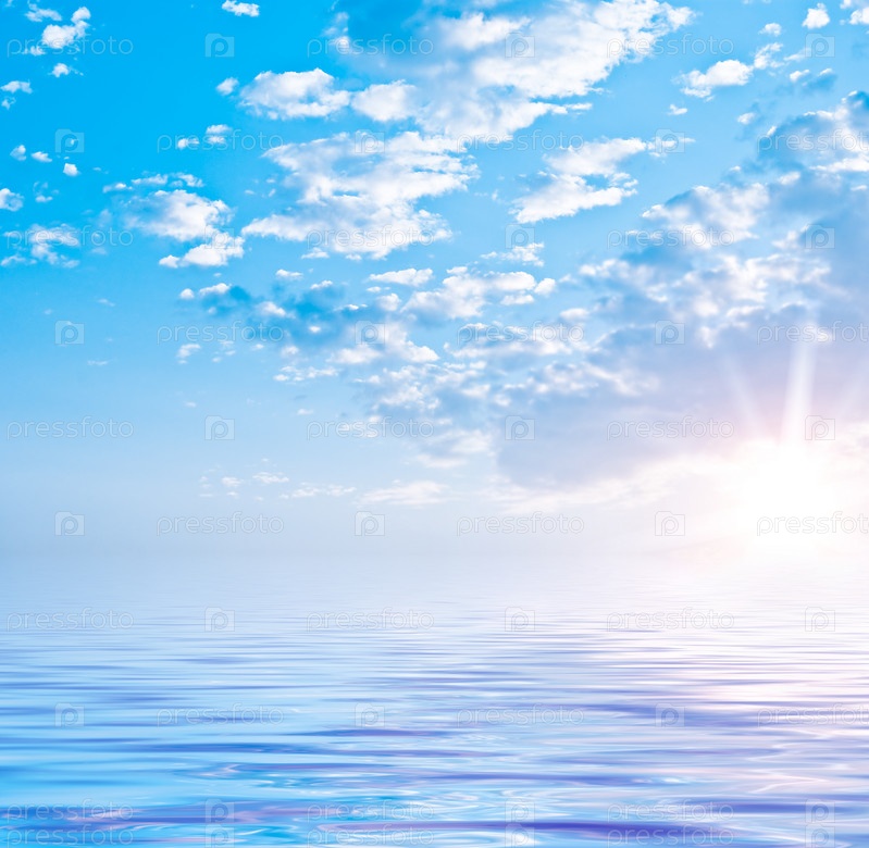 Летний морской пейзаж с солнечным небом и красивыми облаками