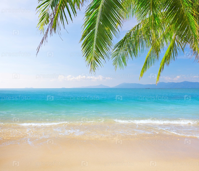 Ладони и тропический пляж