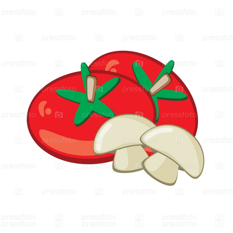 Помидоры и грибы на белом