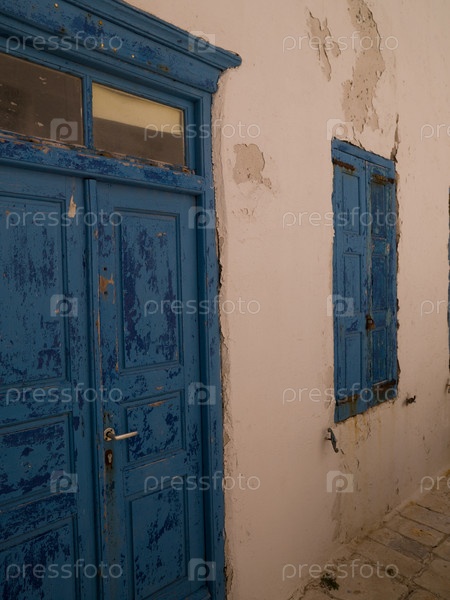 Синий дверь в Миконос, Греция