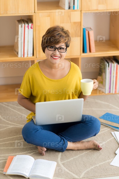 Женщина с кофе и ноутбук