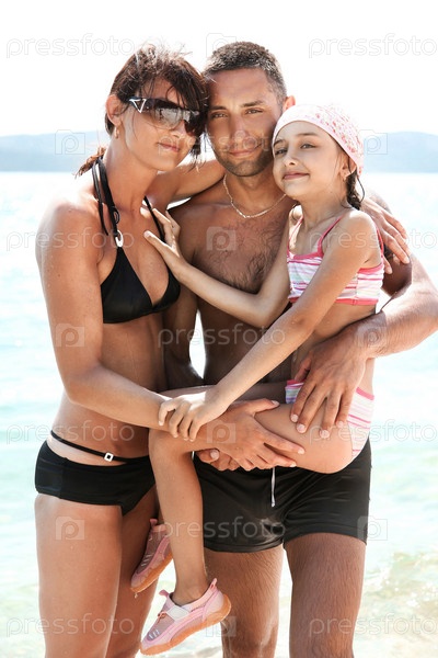 Молодая семья прогулки на пляже