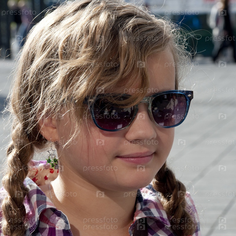 Улыбающаяся девочка в солнцезащитные очки