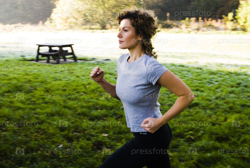 Молодая женщина на пробежку в парке
