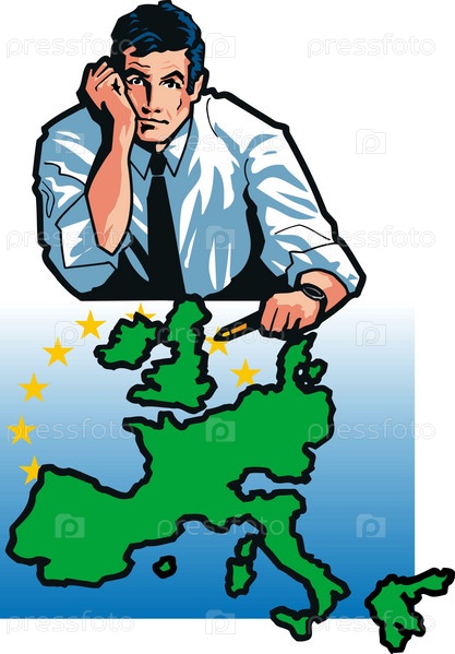 Смешная иллюстрация с изображением задумчивого мужчины с картой