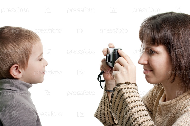 Мама фотографирует улыбающегося сына