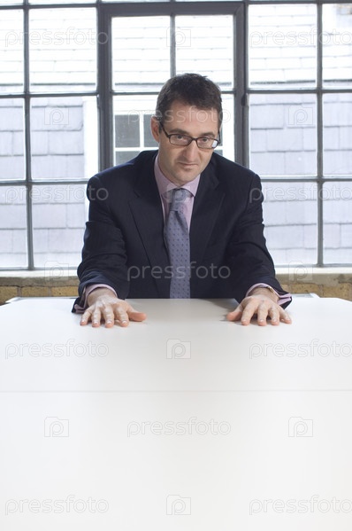Бизнесмен, сидя за столом в офисе
