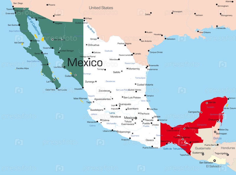 Карта территории государства Мексика, окрашенная национальным флагом