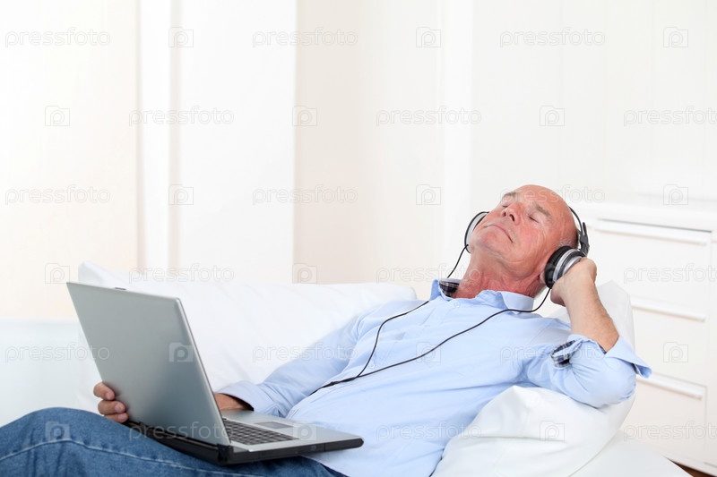 Мужчина слушать музыку с наушниками