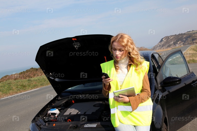 Женщина со сломанным автомобилем