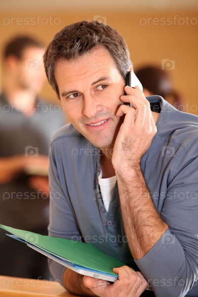 Человек говорят на мобильном телефоне
