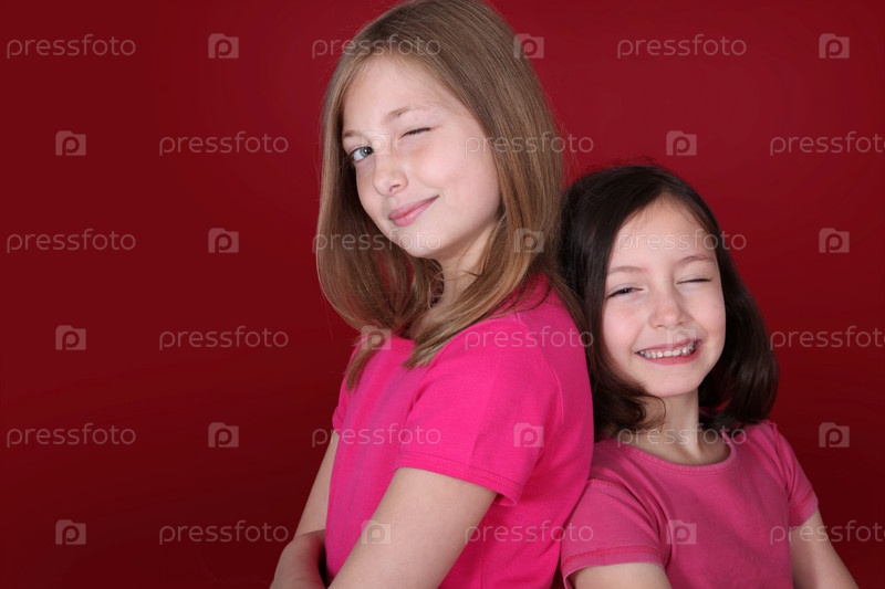 Две девочки на красном фоне