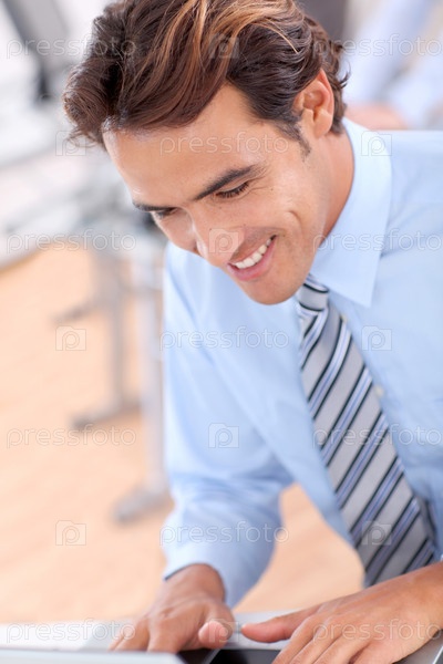 Портрет улыбаясь бизнесмена в офисе