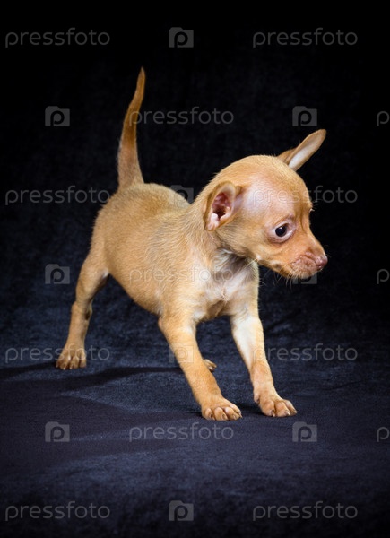 Щенок русского той-терьера на черном фоне