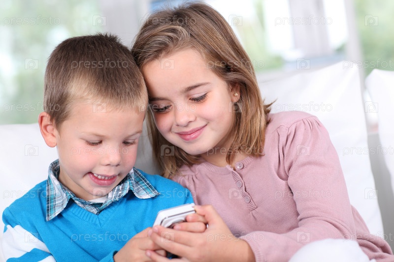 Дети играют с смартфон