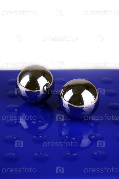 Железные хромированный шары на синей поверхности