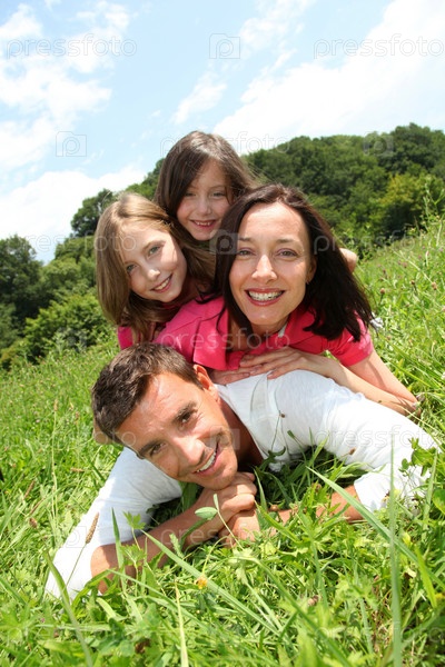 Счастливая семья в парке