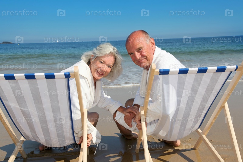 Супружеские пары сидя в шезлонги