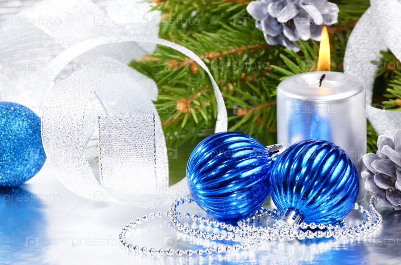 Голубые елочные шары