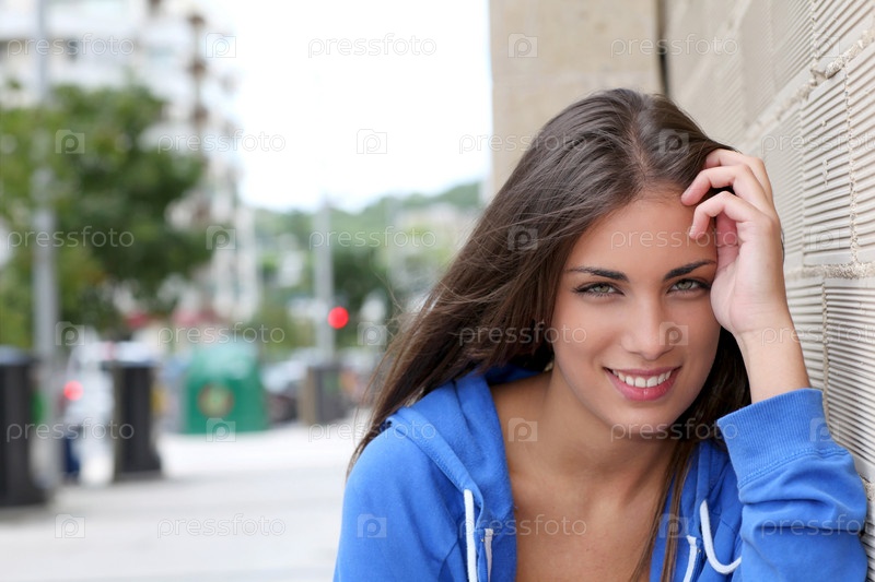 Портрет подростка, сидя на улице