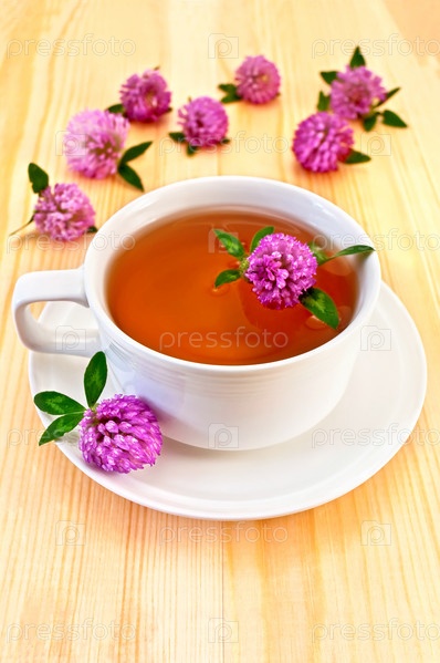 Травяной чай с клевером в белой фарфоровой чашк
