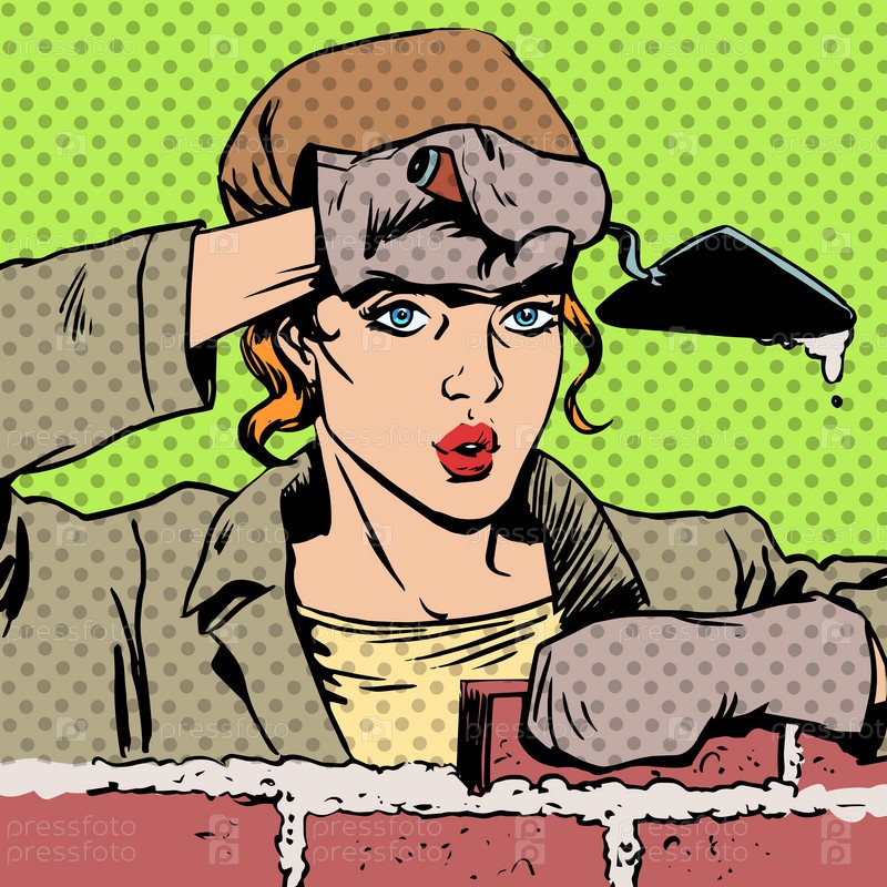 Работница закладывает кирпичи