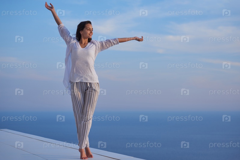 Молодая женщина наслаждаться закатом