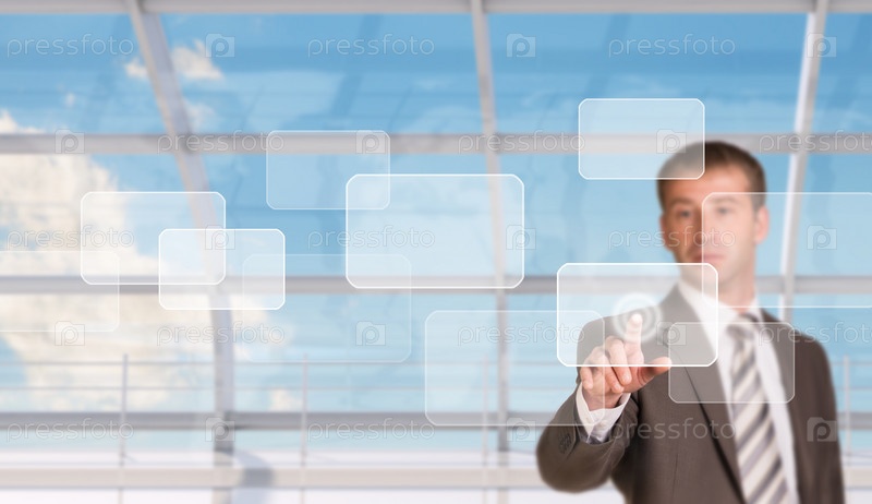 Бизнесмен нажав на экране