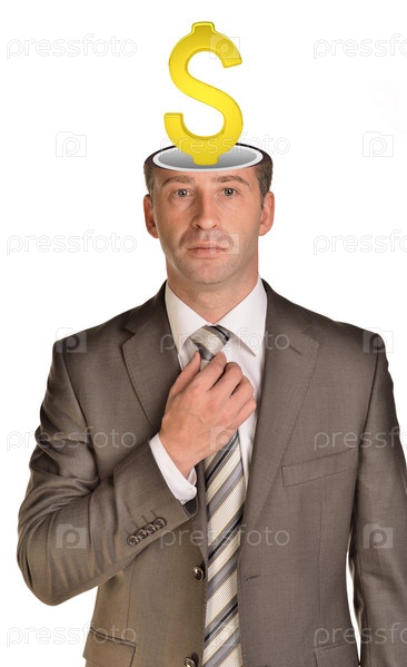 Бизнесмен с долларом внутри головы