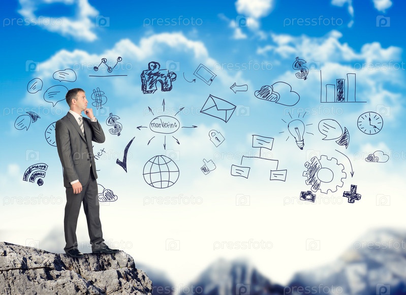 Бизнесмен на вершине горы