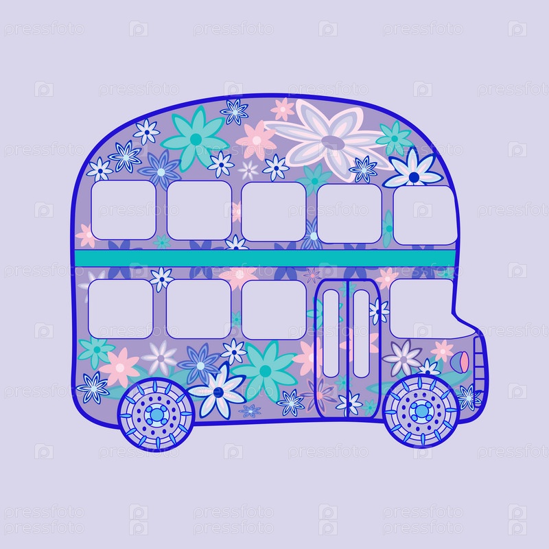 Двухэтажный автобус ретро Винтажные цветы хиппи