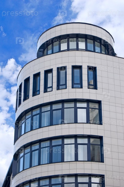 Современное офисное здание на фоне голубого неба