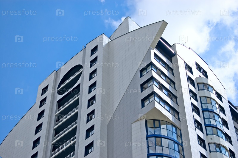 Современное офисное здание на фоне голубого неба
